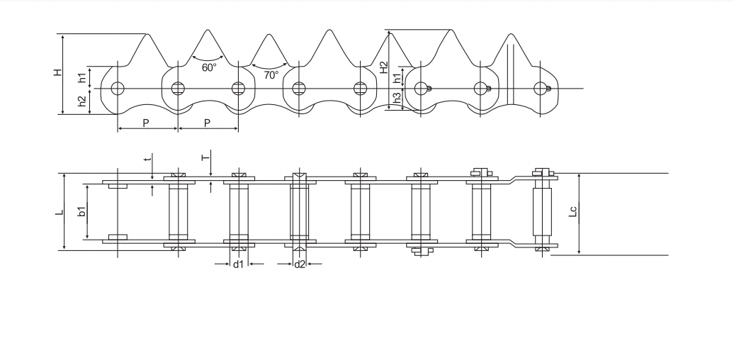 | Select | No. | Pitch mm | Roller diameter mm | Inner section width mm | Pin diameter mm | Pin length mm | Chain plate thickness mm | Chain plate size mm | Tensile strength kN | Inquiry | |||||
